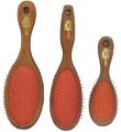 We train our dogs to lie quietly on their side while we do what is called “line brushing” which means that we start at the top and gradually brush through each hair, brushing it upward, section by section. If you regularly keep your dog brushed out, this can be done in a few minutes. This way, you can find any matted hair or sores or rashes which could appear on the dog’s skin. We use either a slicker brush or a metal pin brush for this job. If you find a tangle, you can use the slicker brush to carefully brush out the tangle, before it becomes bad enough to have to be cut out. Even big mats can be picked out if you are patient. The chest, underarms, belly and insides of legs are the usual trouble spots, so if the dog is lying down this makes your job easier. I find that the Doggy Man pin brush, purchased from KV-Vet Supplies, works as well to brush out mats as a slicker. Shannon prefers the slicker, so whichever you are most comfortable with is fine.
